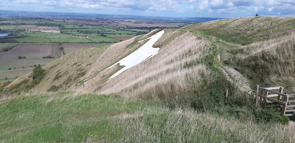 The next day we continued by following the energy line westwards, working our way through the magnificent Westbury White Horse and Bratton Camp, where we held a powerful drum ceremony at Bratton Long Barrow, to reinforce the male and female currents of the energy line as they pass through the barrow and then on through the legs of the white horse itself.