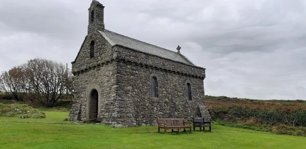 For our penultimate day, we had planned to take a ferry ride across to Skomer Island, to connect with the energy of the sea and experience the beauty and magic of Neptune’s orbit, but the weather had other ideas. So, instead, we had a very wet and blustery visit to St. Non’s Chapel and Holy Well and then to St. David’s Cathedral.